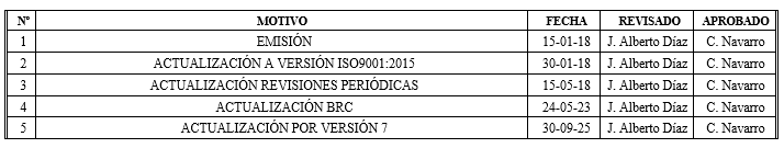 Se realizarán revisiones periódicas de la política de calidad haciendo los cambios que se consideren necesarios.
